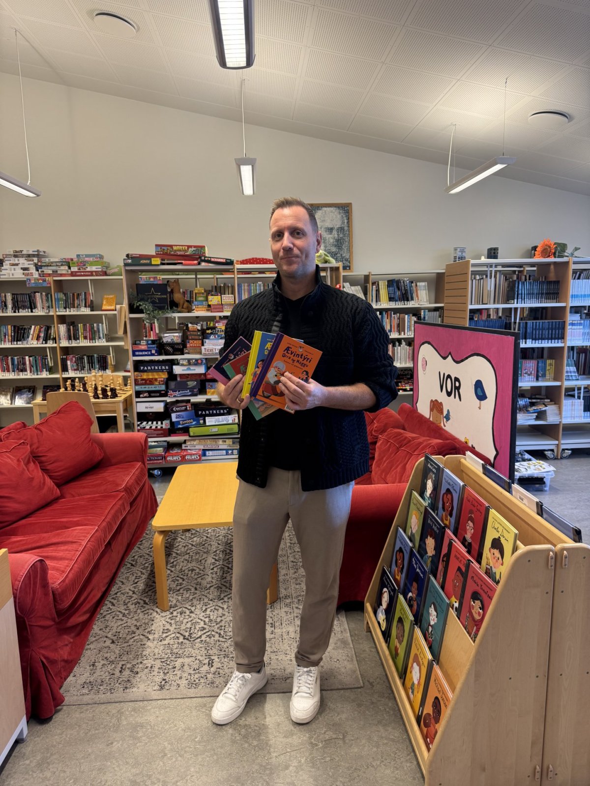 Á dögunum fengum við ánægjulega heimsókn frá rithöfundinum Bjarna Fritz, sem kom og hitti nemendur á yngsta og miðstigi. Hann las upp úr nýjustu bókum sínum og gaf jafnframt skólanum bekkjarsett af lestrarbókum sem hann hefur gert en þeim fylgja einnig verkefnahefti. Þessi gjöf til skólans var afar vel þegin og verður að sjálfsögðu nýtt í lestrarvinnu nemenda.