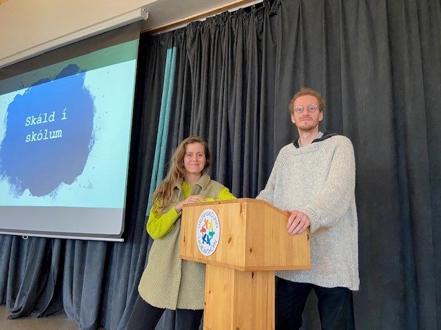 Höfundamiðstöð RSÍ býður grunnskólum upp á bókmenntadagskrá undir nafninu Skáld í skólum þar sem höfundar fjalla um bókmenntir af ýmsu tagi. Við höfum fengið slíkar heimsóknir upp á síðkastið þar sem nemendur hafa hlítt á metnaðarfulla og fræðandi dagskrár höfunda á sal. Skáldin hafa talað um bækur og lestur, sköpun og skrif, ævintýri sögupersóna jafnt sem skapara þeirra og síðast en ekki síst til að smita nemendur af ólæknandi lestrar- og sköpunargleði. Rithöfundarnir Blær Guðmundsdóttir og Hilmar Örn Óskarsson hittu yngstu nemendur okkar í síðustu viku, Bergþóra Snæbjörnsdóttir og Bragi Páll Sigurðsson hittu unglingastigið fyrir hálfum mánuði og í morgun hittu Kristín Ragna Gunnarsdóttir og Sverrir Norland nemendur á miðstigi.