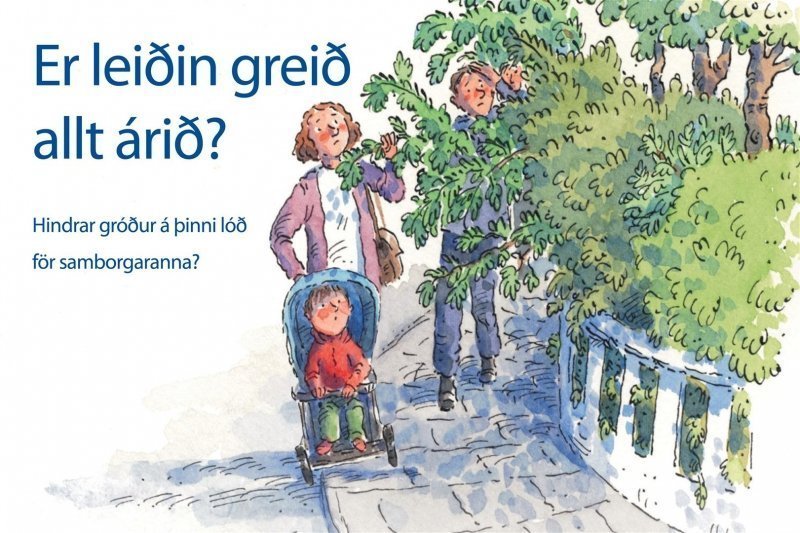 Einnig þarf að hugsa fyrir aðgengi vegna snjóhreinsunar, en gera þarf ráð fyrir 2,8 metra hæð undir trjágreinar á gangstígum til að snjóruðningstæki komist undir á þeim dögum sem trjágreinar slúta undan snjóþunga.
