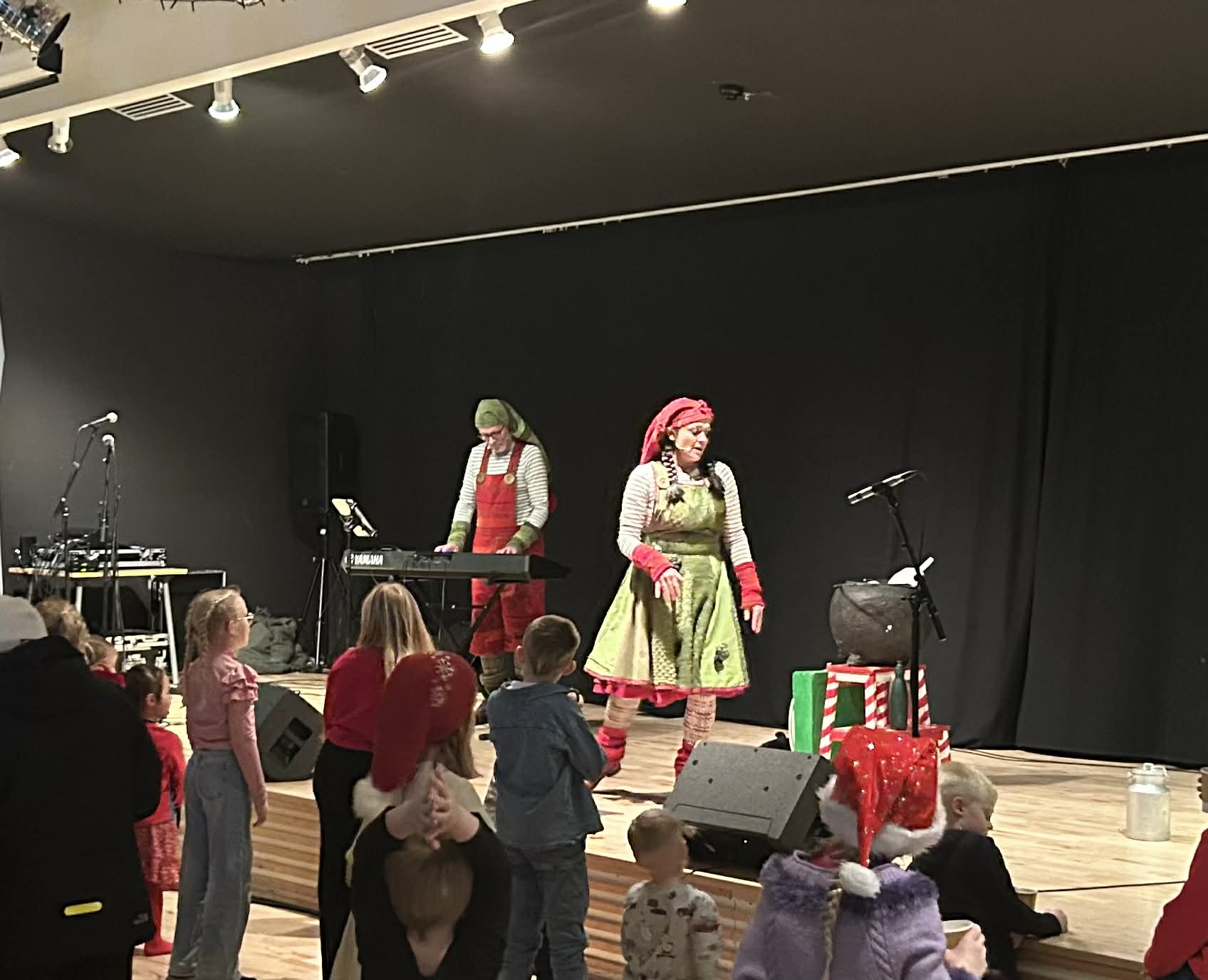 Seinnipart dagsins tók gleðin við í Versölum þar sem fjölskylduskemmtun fór fram. Upphaflega átti skemmtunin að vera í Skrúðgarðinum, en veðrið kallaði okkur inn – þó voru ljósin á bæjarjólatrénu tendruð í ljósaprýddum Skrúðgarðinum. Lúðrasveit Þorlákshafnar og barnakór grunnskólans fluttu ljúfa jólatóna. Því næst skemmtu Skjóða og Langleggur og sögðu hressandi jólasögu úr Grýluhellinum. Að lokum mættu jólasveinarnir, Hurðaskellir og Ketkrókur, við mikinn fögnuð yngstu gestanna. Kiwanismenn buðu öllum uppá heitt kakó og piparkökur og fóru því allir saddir og sælir heim.