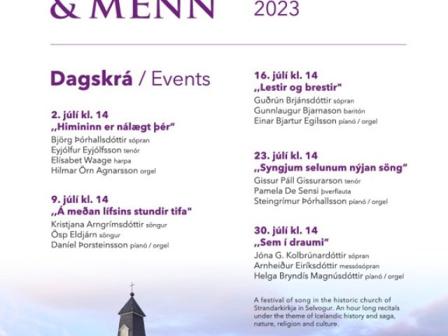 Englar og menn - tónlistarhátíð Strandarkirkju 2023 stendur yfir fimm sunnudaga í júlímánuði. Fram koma fjölmargir þjóðþekktir tónllistarmenn á um klukkustundarlöngum tónleikum sem hefjast kl. 14. Þema hátíðarinnar er englar og menn, land, náttúra, trú og saga þar sem íslensk þjóðlög, sönglög og dægurlög, ástamt innlendum og erlendum trúarljóðum og klassískum verkum úr heimi tónbókmenntanna hljóma í flutningi ungra vonarstjarna og landsþekktra söngvara og hljóðfæraleikara.