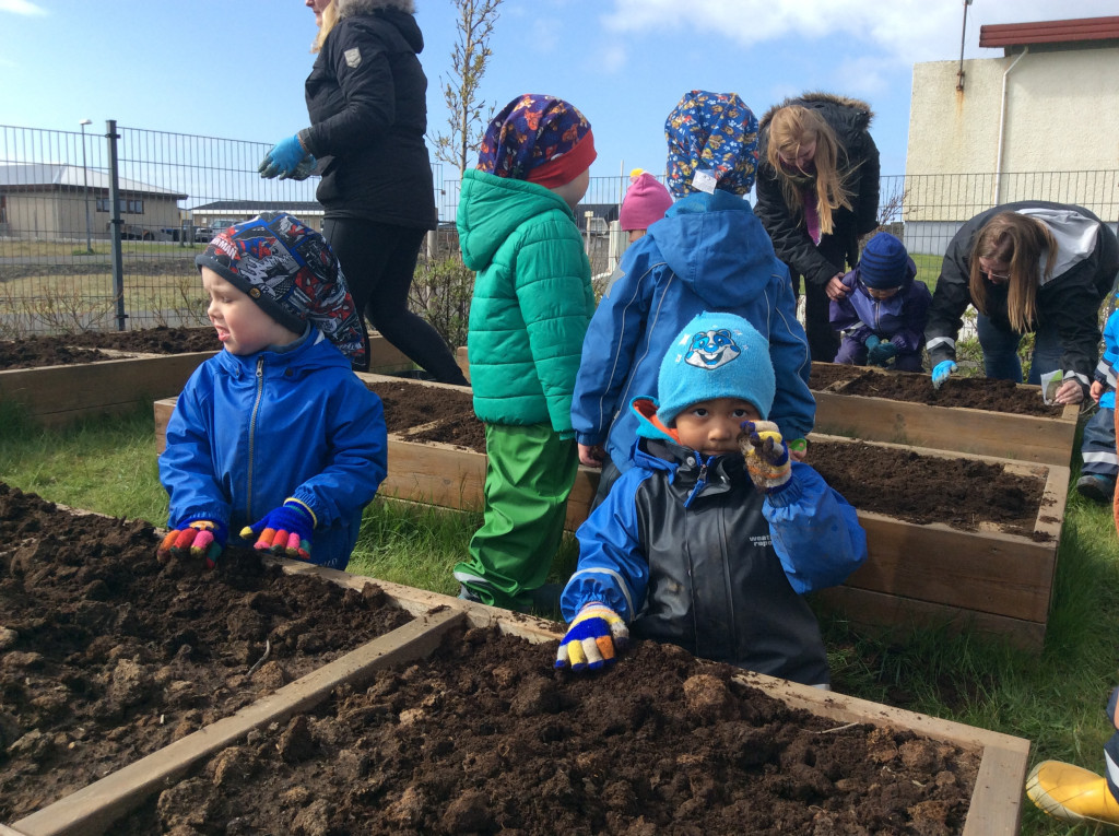 Í gær settum við niður ýmis grænmeti og krydd í grænmetisgarðinn okkar :)