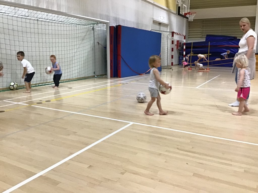 Það var spenna í loftinu og mikil eftirvænting fyrir fyrsta íþróttatímanum í dag. Við byrjuðum í upphitun og hlupum frjálst um salinn og svo skiptust börnin í fjóra hópa og fóru á milli mismunandi stöðva. Nokkur börn voru að fara í sinn fyrsta íþróttatíma og stóðu sig allir með mikilli prýði.