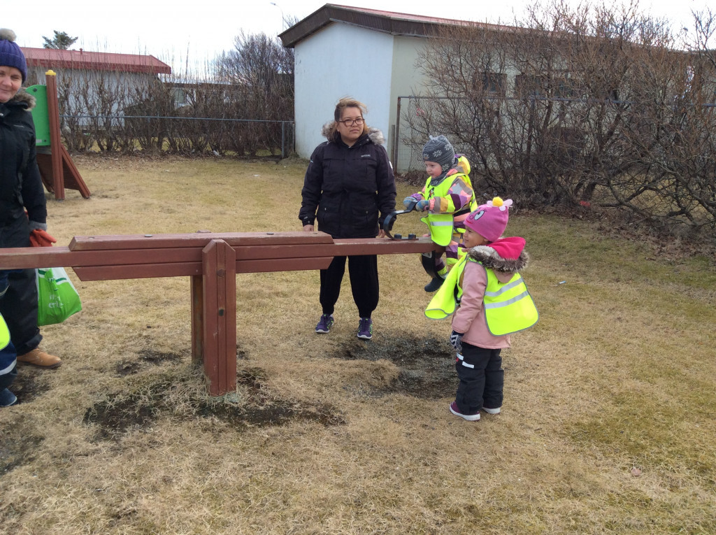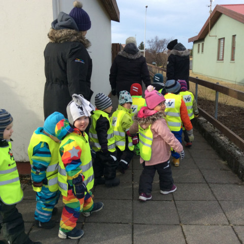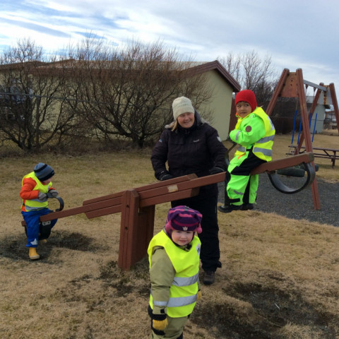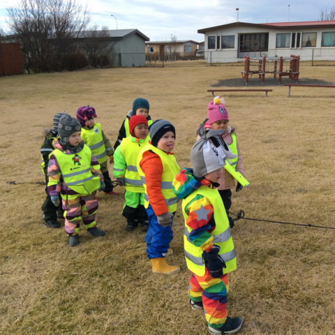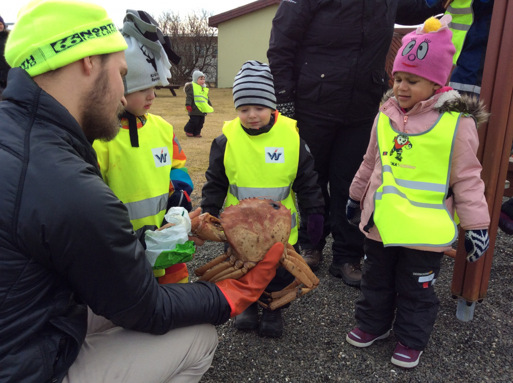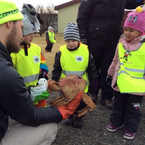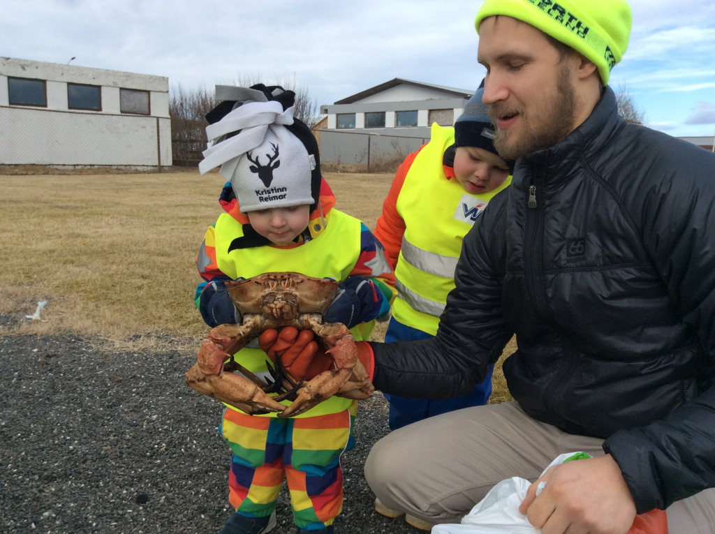 Í dag fórum við í göngutúr á Setbergsróló. Óskar, pabbi Kristins Reimars kom út á róló með stórann krabba og sýndi krökkunum. Við fengum að eiga krabbann og fórum með hann í leikskólann að sýna hinum krökkunum.