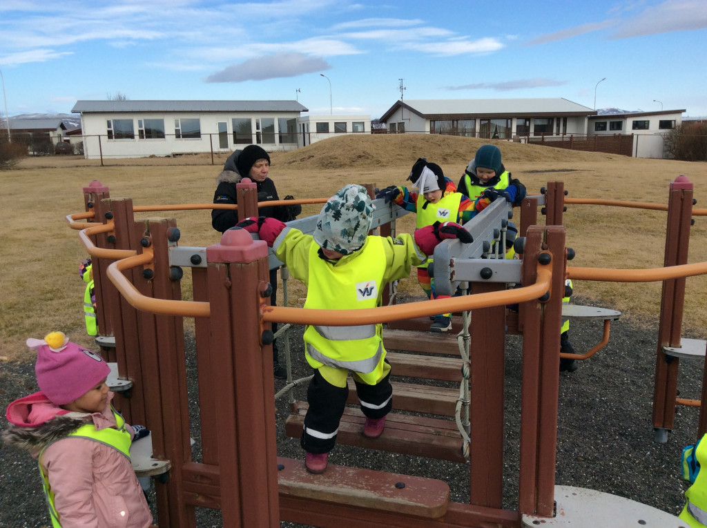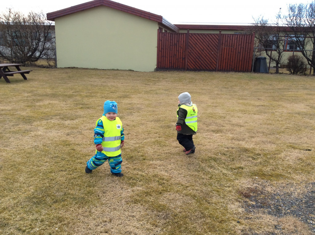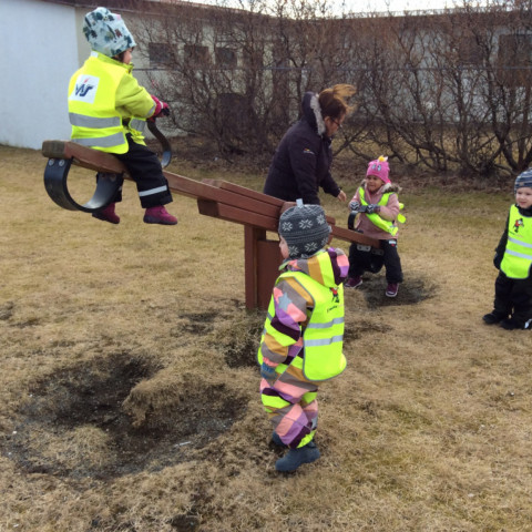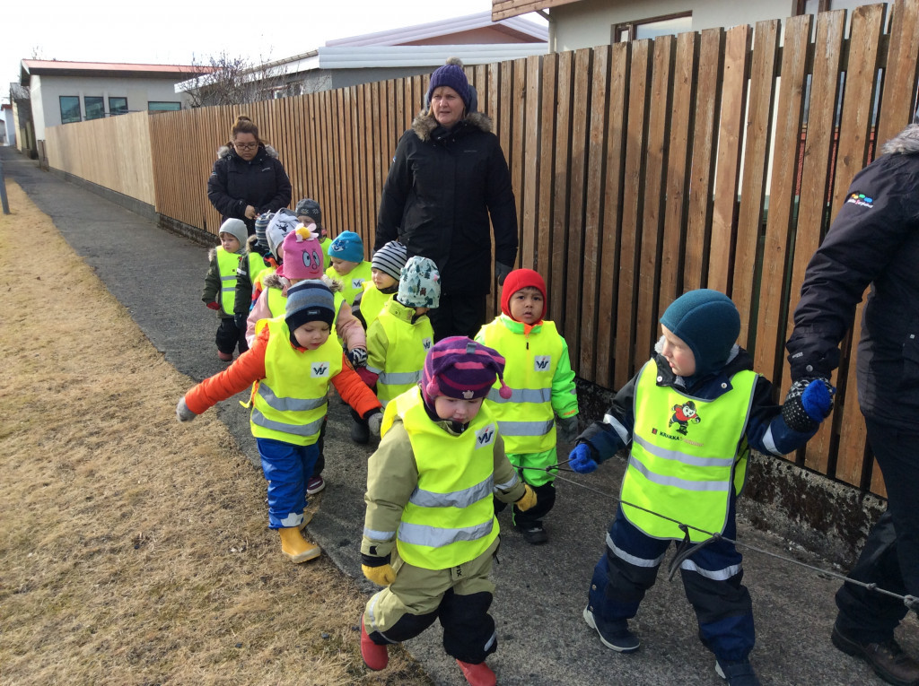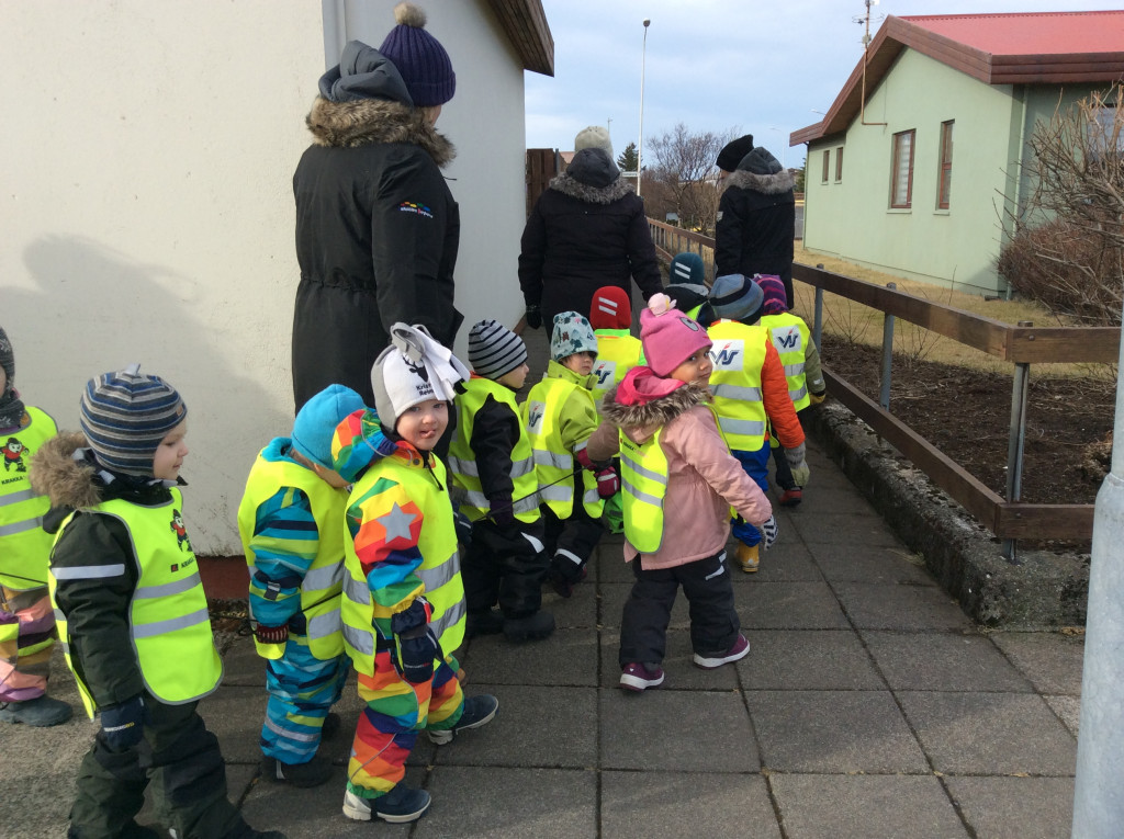 Í dag fórum við í göngutúr á Setbergsróló. Óskar, pabbi Kristins Reimars kom út á róló með stórann krabba og sýndi krökkunum. Við fengum að eiga krabbann og fórum með hann í leikskólann að sýna hinum krökkunum.