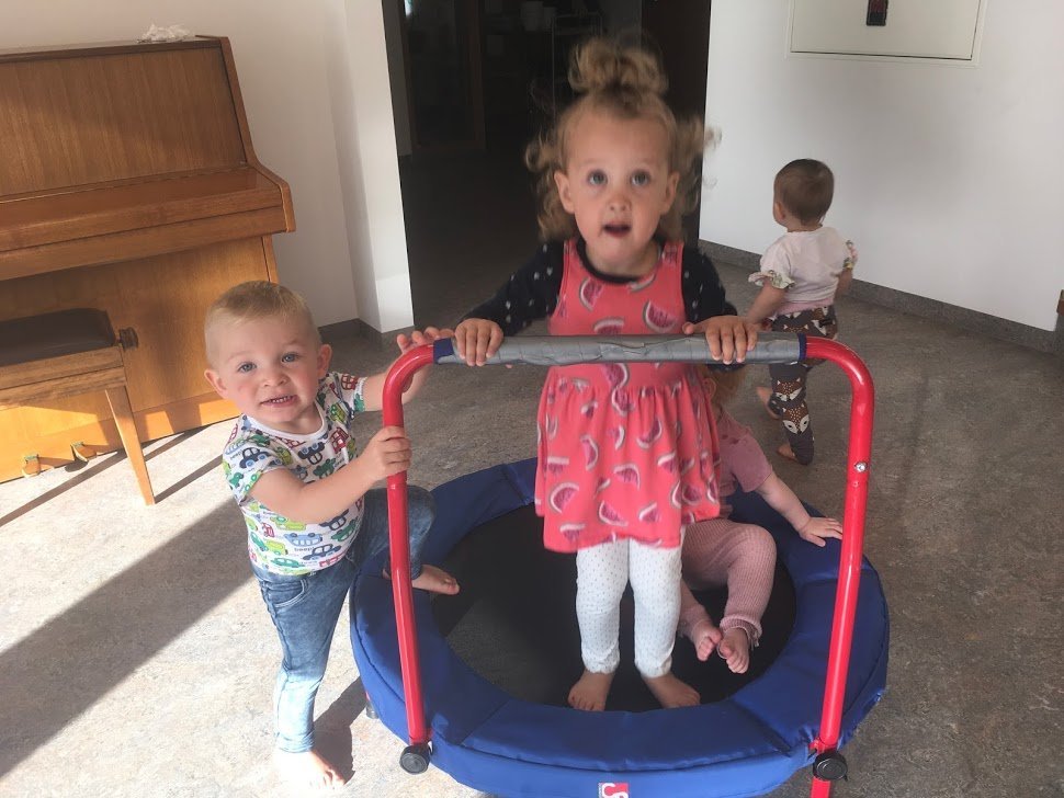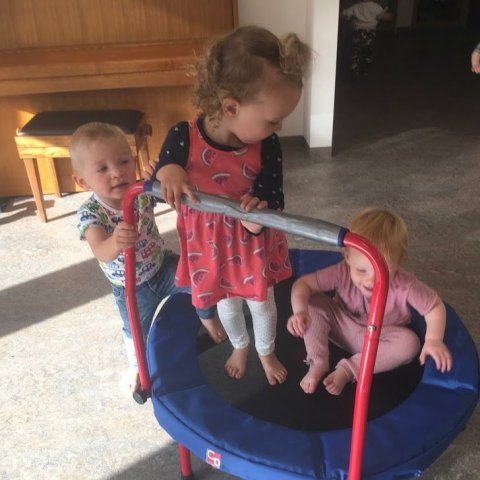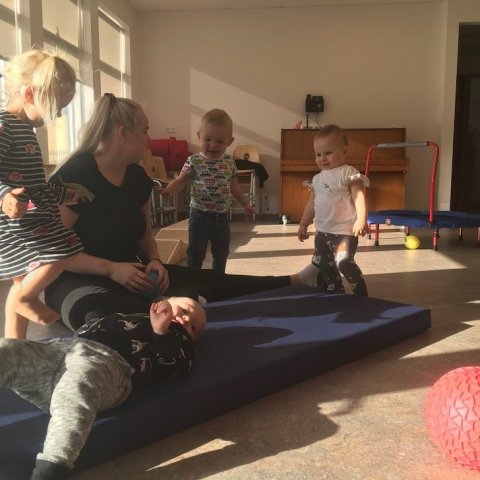 Í gær fórum við í fyrsta sinn í íþróttatíma í salnum. Það var mikið fjör og mikið gaman. Börnin hlupu, léku sér með bolta, klifruðu í rimlunum, hoppuðu á trampólíni, fóru í kollhnís og margt fleira skemmtilegt.