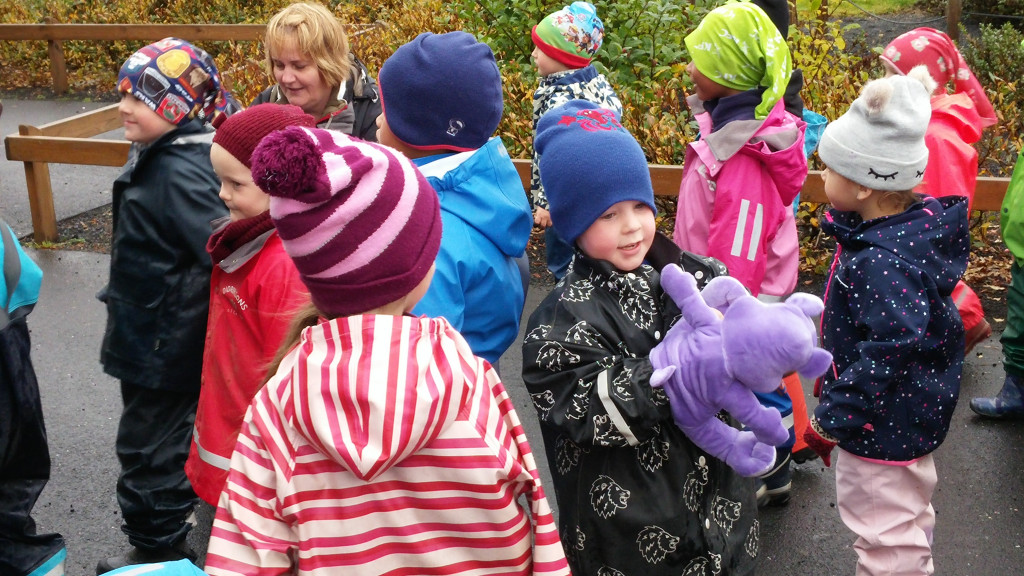 Í dag komu Brunavarnir Árnessýlsu í heimsókn á stærðar bíl með hávaða og látum en ástæða heimsóknarinnar var að koma með Blæ. Blær frá Huldu- , Trölla-, og Goðheimum fóru í sumarfrí í vor og á leið sinni til Þorlákshafnar í morgun rákust þeir á þessa tvo brunaverði sem tóku þá með sér í bílinn og keyrðu þá í leikskólann. Börnin urðu mjög hissa þegar þeir mættu á svæðið en ánægð að fá Blæ aftur. Með komu Blæs hefst vinna með vináttuverkefnið aftur en það fer í sumarleyfi ár hvert. Þökkum við þessum góðu mönnum kærlega fyrir að koma þeim til byggða.