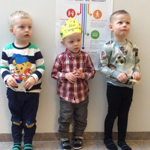 Baldvin Snær varð 3 ára 22. febrúar og Adrian varð 2 ára 23. febrúar. Þeir fengu fallega afmæliskórónu og völdu sér afmælisdiska í hádegismat. Á föstudeginum var sungið fyrir þá afmælissönginn í sameiginlegri söngstund leikskólans.