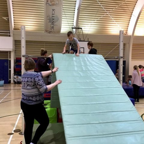 Þann 6. febrúar var dagur leikskólans og af því tilefni fengu börnin að hafa frjálsan tíma í íþróttum. Kennarar stilltu upp stórri braut fyrir börnin með ýmsum nýjungum sem þau eru ekki vön í íþróttum hjá leikskólanum. Mikil gleði ríkti hjá bæði börnum og kennurum eins og sjá má á myndunum.
