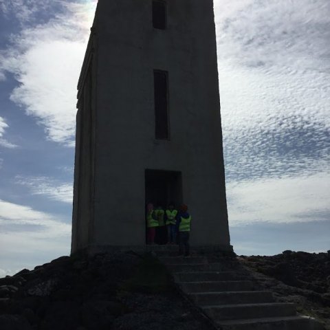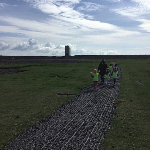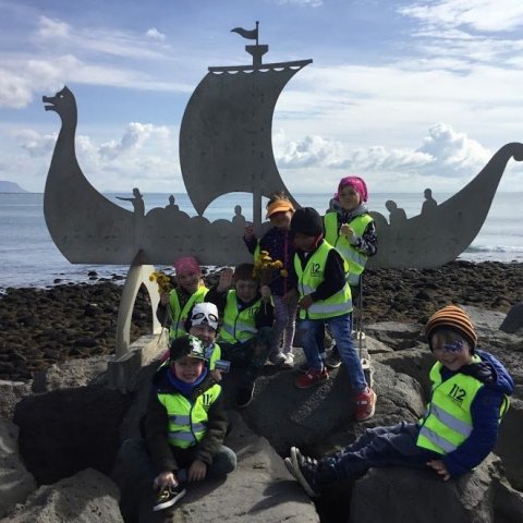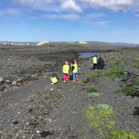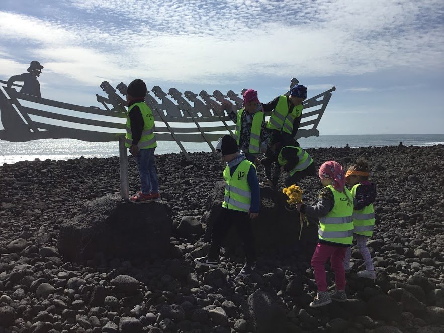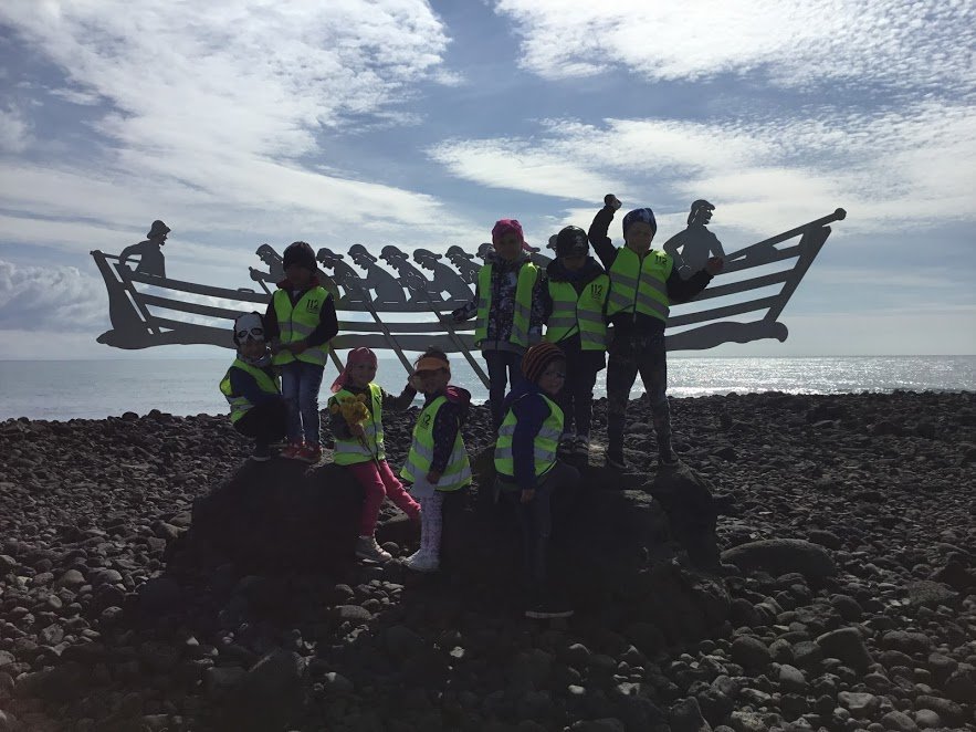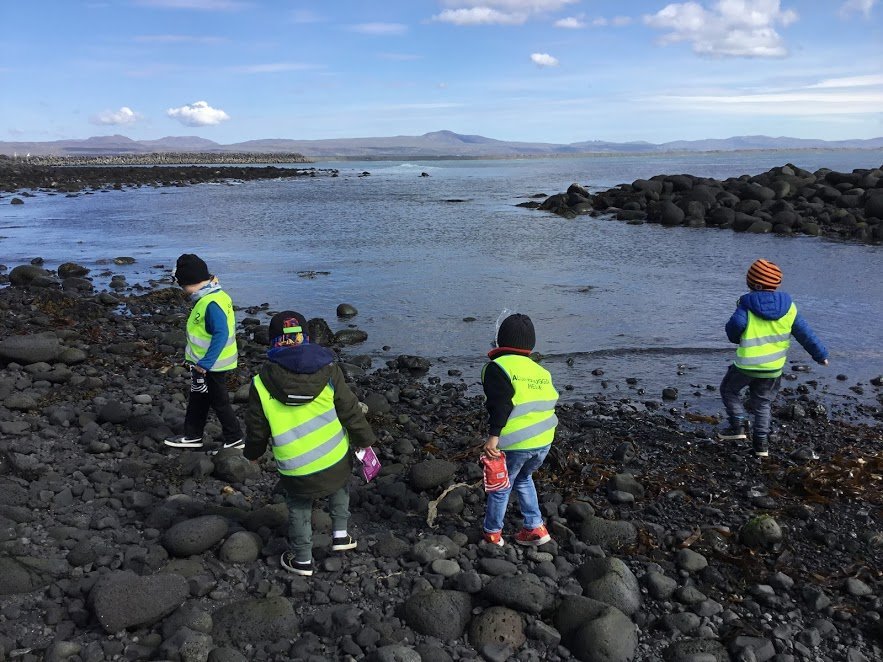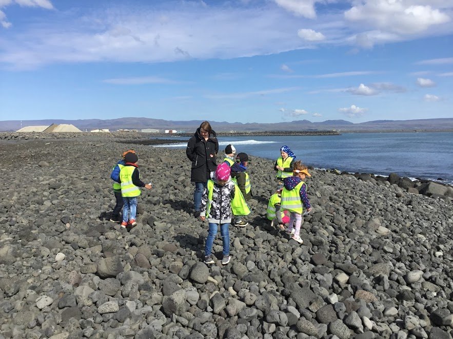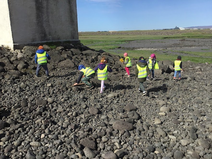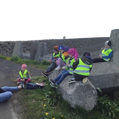 Í góða veðrinu á mánudag fór eldri hópur í gönguferð að Útsýnispalli og vita. Ferðin gekk vel og voru börnin áhugasöm um þetta fallega svæði sem við höfum. Þau tíndu skeljar og kuðunga í poka og komu með heim.