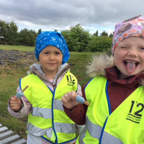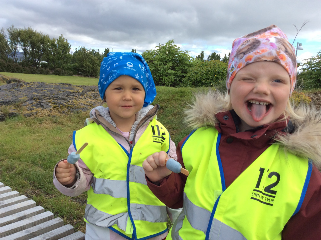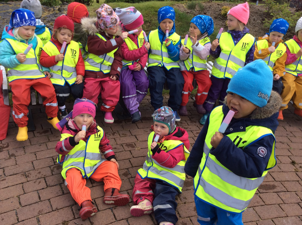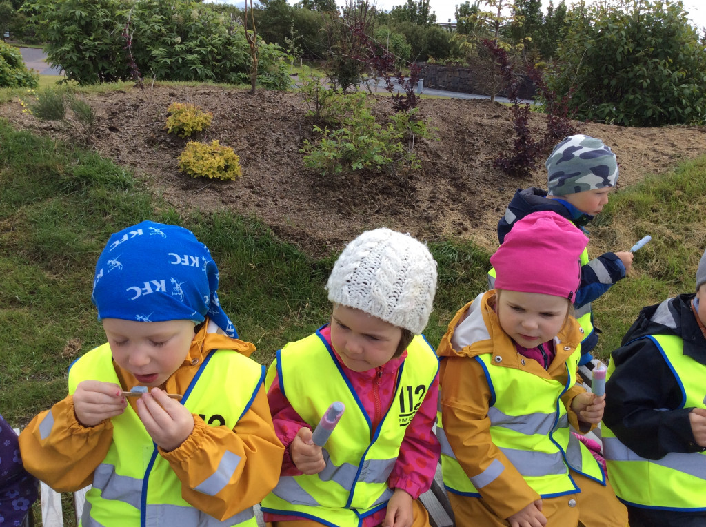 Við erum búin að vera safna dósum og flöskum allt skólaárið og notum við ágóðan til að kaupa okkur ís. Þetta árið keyptum við geislasverð og áttum góða stund saman í Skrúðgarðinum.