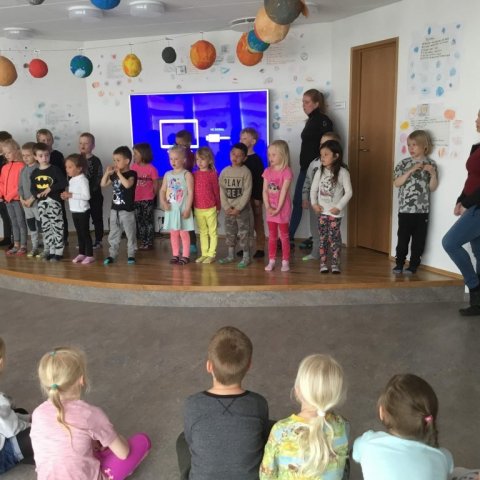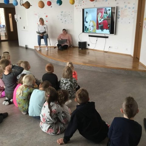 Uppskeruhátíð var í dag hjá skólahópum á Huldu- og Tröllaheimum þegar 1. bekkur kom og heimsótti okkur. Skólahópur söng þrjú lög og síðan las Ragga söguna um Gilitrutt og Ingibjörg sýndi myndir á skjávarpa. Eftir það var farið út að leika í góða veðrinu. Við þökkum 1. bekk fyrir komuna og samstarfið í vetur.