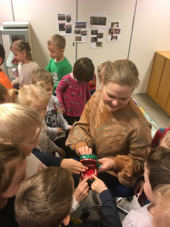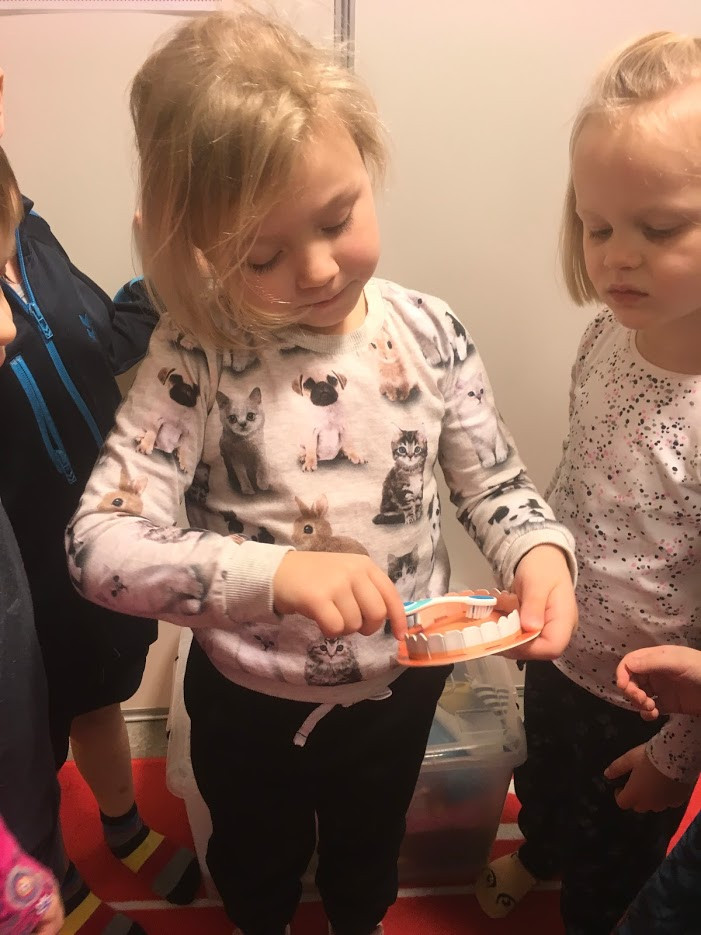 Í tilefni af tannverndarviku kom Petra tannlæknir og Jenný aðstoðakona hennar í heimsókn til okkar. Þær fræddu börnin um tannhirðu og allir fengu svo tannbursta að gjöf.