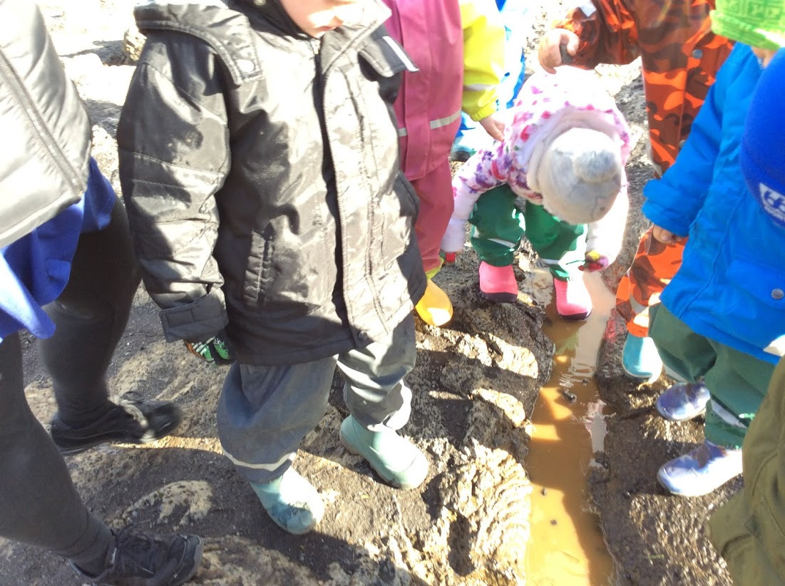 Við fórum í leik sem heitir Flýtur/sekkur í útiveru um daginn. Leikurinn er þannig að kennari var búinn að finna fullt af dóti eins og kubb, stein, laufblað, hring og sand. Við fundum svo poll og áttu börnin að giska hvort hluturinn myndi fljóta eða sökkva. Börnin fóru svo og fundu sjálf hluti sem þau vildu prófa. Þetta var mjög fræðandi leikur og voru þau alveg komin með það hvað myndi fljóta og hvað sökkva.