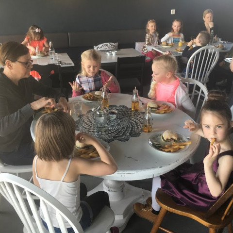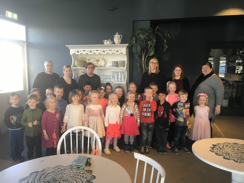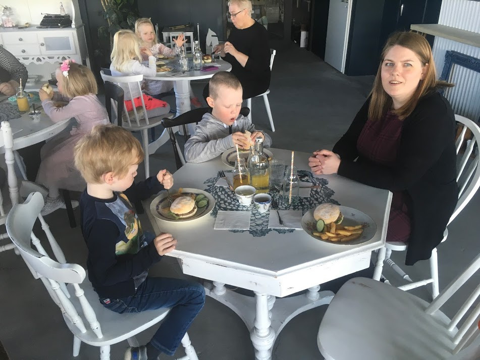 Á hádeginu fórum við út að borða á veitingarstaðnum Hendur í höfn en það var foreldrafélag leikskólans sem bauð okkur. Dagný og starfsfólk hennar á staðnum tók vel á móti okkur og fengum við hamborgara og köku í eftirrétt. Við vorum fyrstu gestirnir á nýja staðnum hennar Dagnýjar og leist okkur mjög vel á staðinn. Takk fyrir okkur foreldrafélag leikskólans og Dagný fyrir að taka á móti okkur.